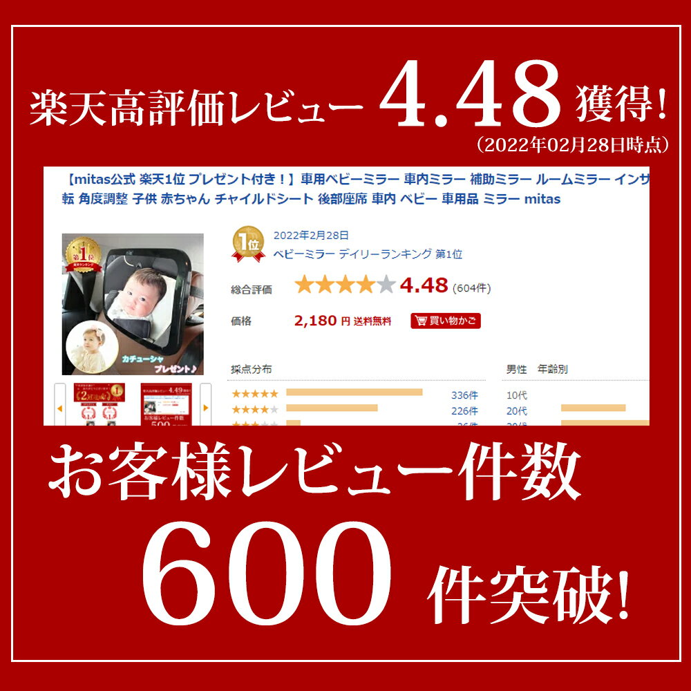 【mitas公式 楽天1位 プレゼント付き!】車用ベビーミラー 車内ミラー 補助ミラー ルームミラー インサイトミラー ヘッドレスト 360度回転 角度調整 子供 赤ちゃん チャイルドシート 後部座席 車内 ベビー 車用品 ミラー mitas