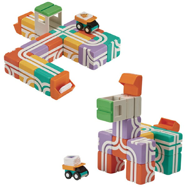 「QBI キュービーアイ」は、6面に直線、カーブ、分岐などさまざまな車が走る道が描かれたキューブ型のブロックを組み合わせて道路を完成させ、車を走らせて遊ぶ台湾生まれの知育玩具です。
