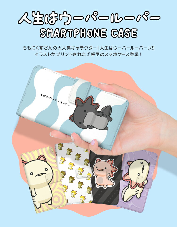 iPhoneSE iPhone13 Pro Max iPhone13mini ケース iPhone12Pro 8 XR 手帳型 全機種対応 LINE ももにくす 人生はウーパールーパー 右利き 左利き スマホカバー Xperia1IV SO51C SOG06 AQUOS R7 SH-52C SHG07 Galaxy A53 S22 Rakuten BIG s Google Pixel5a OPPO Reno5A