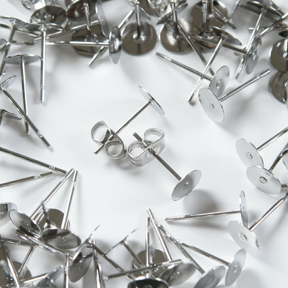 カラー:シルバー 数量:ピアスとキャッチがそれぞれ100個(50ペア)ずつ サイズ:6mm金属アレルギーを起こしにくい材質でございますが、お肌に合わない場合はご使用を直ちに中止してください。
