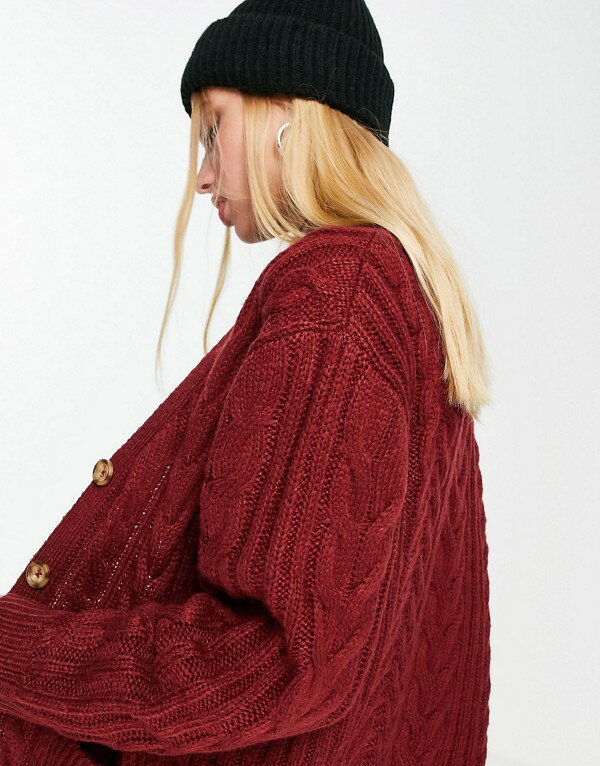 リクレイムドヴィンテージ Reclaimed Vintage ブルゴーニュの再生ヴィンテージ風ケーブルニットカーディガン トップス レディース 女性 インポートブランド 小さいサイズから大きいサイズまで