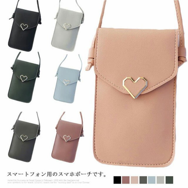 送料無料 入れたまま操作! ハート スマホショルダー レディース スマホポーチ スマホショルダー フォンケース ポシェット サコッシュ スマホバッグ カード ショルダーバッグ ミニ 肩掛け 斜めがけ 縦型 おしゃれ かわいい シンプル メール便