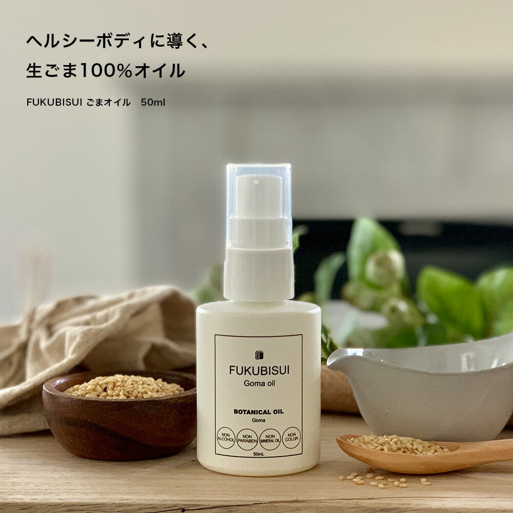 広告文責 福美人株式会社 03-5428-4343 区分 化粧品ヘルシーボディに導く、 生ごま100%オイル FUKUBISUI 福美水ごまオイル 50ml 保存料不使用 無臭 100%生ごま ビタミンE ごまに含まれるビタミンEをたっぷり味わってほしい ”ピュアさ”にこだわって作られた、100%生ごまから出来た美容オイル。