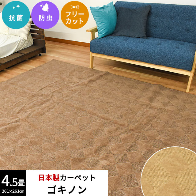 カーペット 4.5畳 江戸間 ラグマット 抗菌 防臭 日本製 無地 261×261 ラグ 正方形 絨毯 じゅうたん オールシーズン 国産 北欧 おしゃれ 床暖房 シンプル フリーカット 4畳半 ダイニング 和室 子供部屋 送料無料 夏用 にも