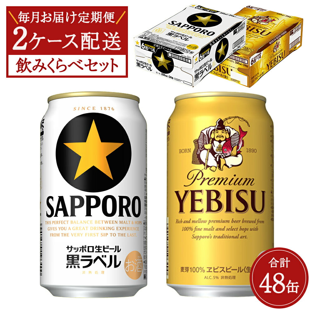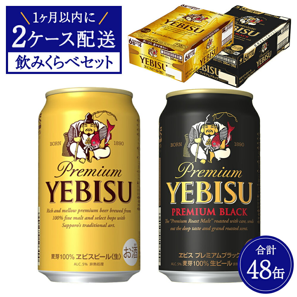 【ふるさと納税】【1ヶ月以内に2ケース配送】ヱビス ビール・サッポロビール 350ml 缶 × 24本 × 2種 飲みくらべ 《1》ヱビス オリジナル、《2》黒ラベル[合計48缶]仙台 工場産
