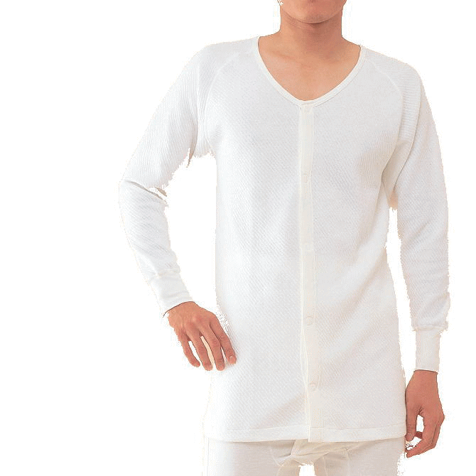 商品名 紳士キルト前開き長袖(BM1) オフホワイト 素材・材質 表・裏:綿100% 中わた:ポリエステル100% サイズ M:身長165-175cm 胸囲88-96cm 胴囲76-84cm L:身長175-185cm 胸囲96-104cm 胴囲84-94cm 商品説明 中わたを綿素材でキルトしたあったか肌着(秋冬用) ○中わたキルティング素材の防寒用ワンタッチ肌着。