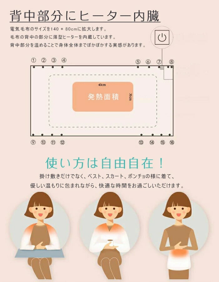 【USB電気敷き掛毛布】140*80cmの大判サイズ、男女兼用。