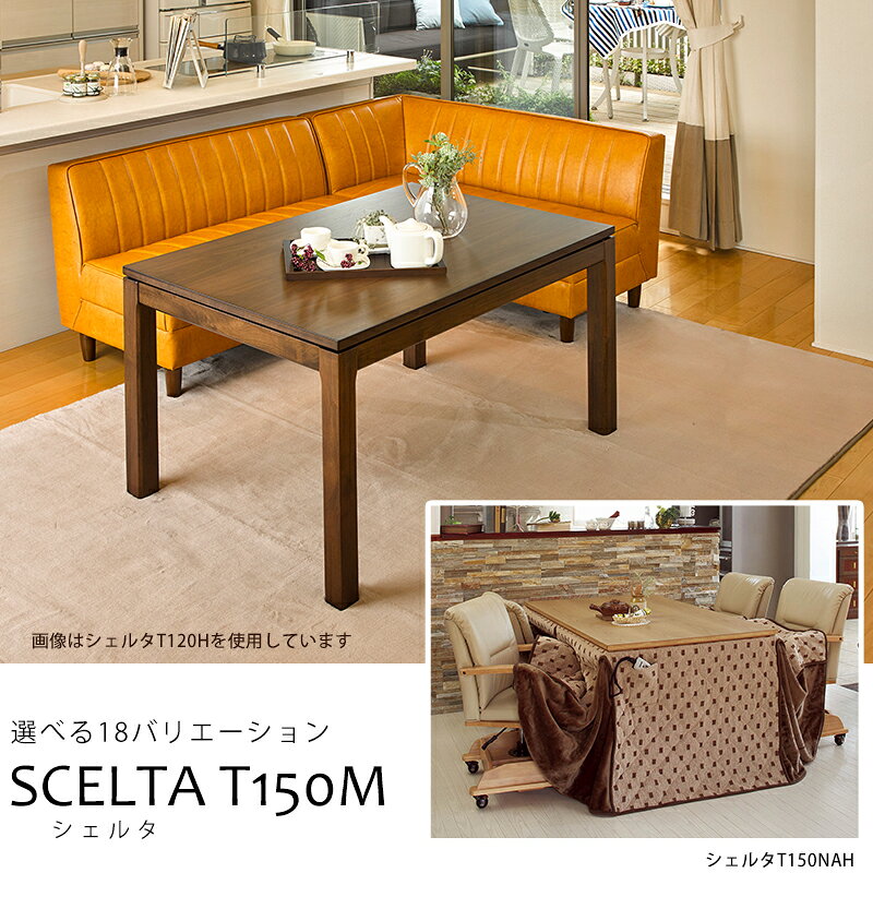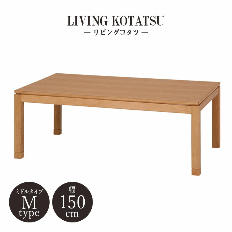 送料無料 リビングコタツ 幅150cm ミドルタイプ テーブル コタツ こたつ KOTATSU 炬燵 継脚 高さ調整 継ぎ脚 ダイニング 高脚 おしゃれ 木製 北欧 シンプル モダン ミッドセンチュリー 組立式 天板固定ネジ付 コード収納ボックス付 5cm継脚付 ナチュラル シェルタT150NA-M