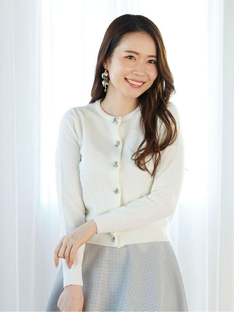 QUEENS COURT(クイーンズコート)【大きいサイズ】ビジューボタンカーディガン>前立てのビジューボタンがポイントのカーディガン。