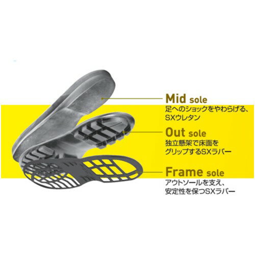 2528975特長接地面積を最大化する「独立懸架方式」のSX3層底により、あらゆる凹凸床面や平滑床面においても優れたグリップ力を発揮します。