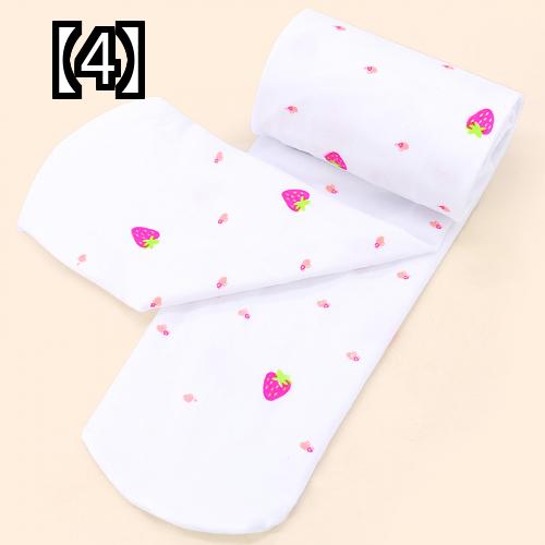 タイツ キッズ かわいい 女の子 涼しい うすい つま先あり 発表会 イチゴ柄 フルーツ 白 伸縮性 破れにくい ピンク 水色 幼稚園