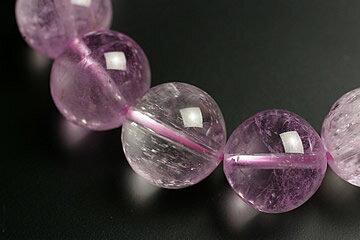 こちらのクンツァイトのブレスレットは丸玉用などで販売できる最高級品の品質のグレードのものをわざわざ、ブレスレットにしたものです。