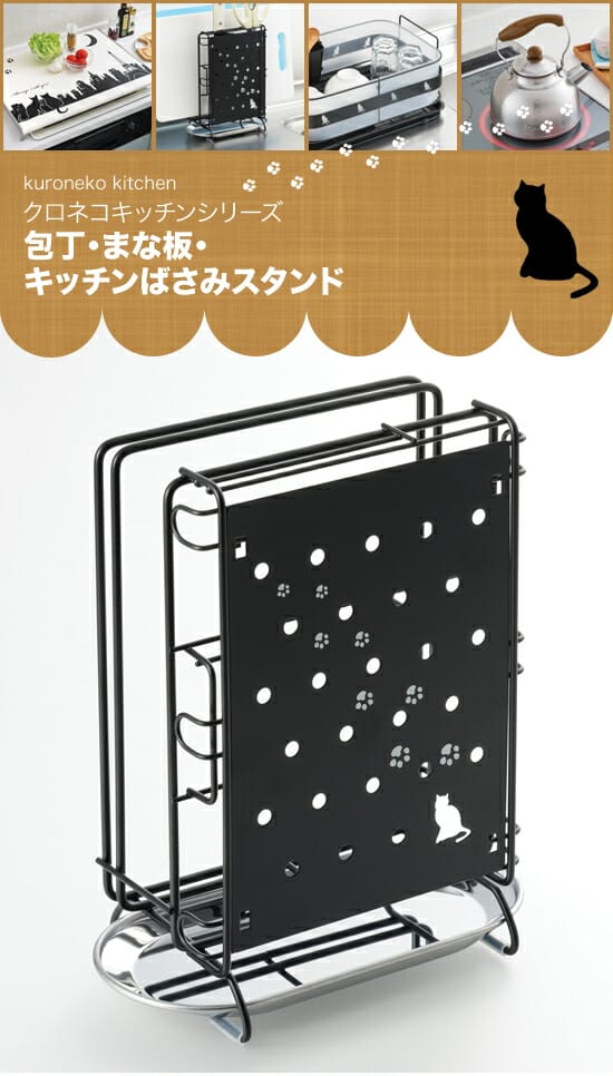 ヨシカワクロネコキッチン 包丁・まな板・キッチンばさみスタンド 1305628 猫シリーズ ねこのシルエットでかわいく目隠し♪