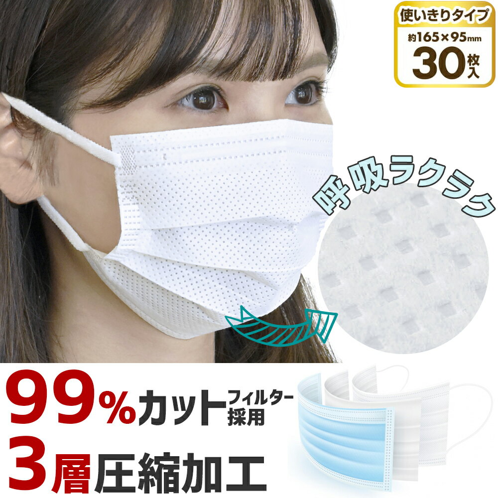 不織布マスク BMC マスク 30枚入り ミディアムサイズ 使い捨て マスク 花粉99% BFE99% PFE99% VFE99%カット 広耳ゴム 耳が痛くなりにくい マスク 99 カット ライトマスク 呼吸快適 詳しく見る