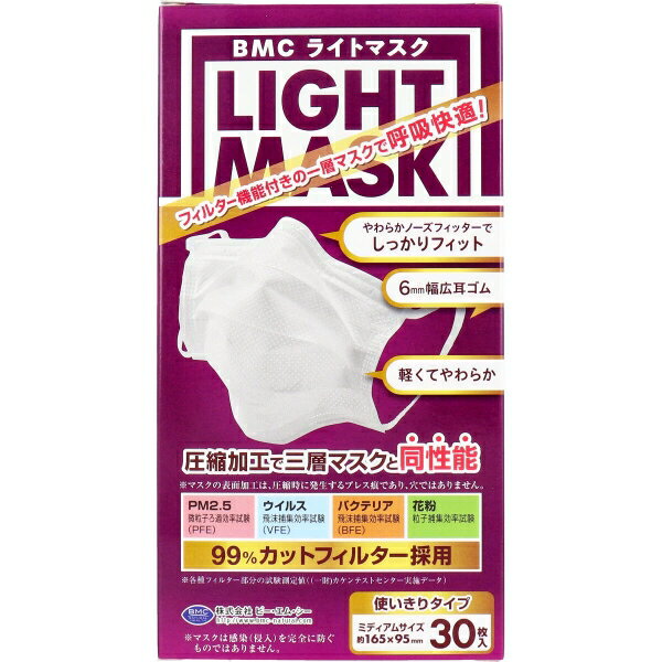 BMC ライトマスク 1層マスク(3層構造圧縮加工) ミディアムサイズ 使い切りタイプ 30枚入 [キャンセル・変更・返品不可]