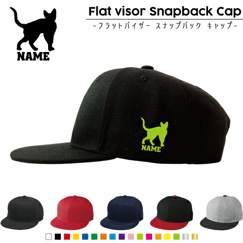 アメリカンボブテイル 名入れフラットバイザースナップバックキャップ 定番 帽子 キャップ UVカット 熱中症対策 UV対策 日よけ ランニング アウトドア ジョギング 屋外 かわいい おしゃれ 父の日プレゼント、グッズ 猫 ネコ ねこ キャット ペット