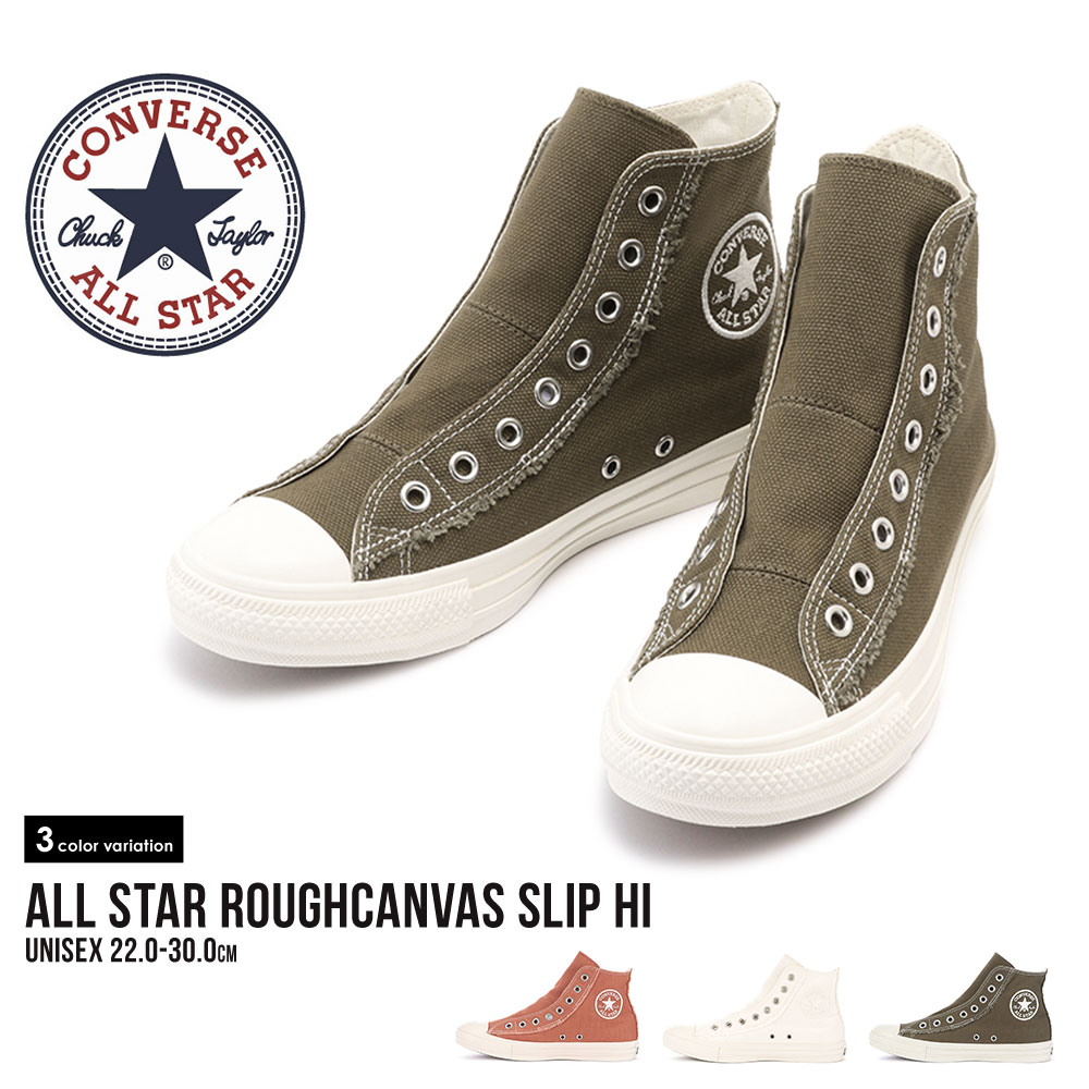 コンバース オールスター ハイカット スリッポン スニーカー レディース 白 スニーカー メンズ キャンバスシューズ 2way ジュニア シューズ ラフキャンバス 小さいサイズ 大きいサイズ ホワイト オレンジ カーキ オリーブグリーン 緑 送料無料