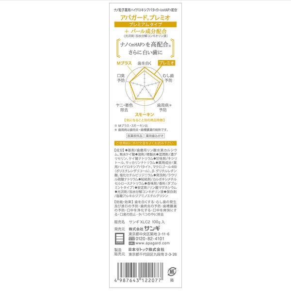 ナノ粒子薬用ハイドロキシアパタイト<mHAP>配合 プレミアムタイプ +パール成分配合(光沢剤:加水分解コンキオリン液) ナノ<mHAP>を高配合さらに白い歯に