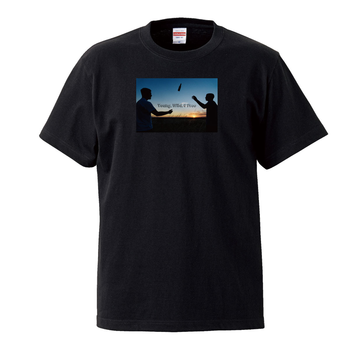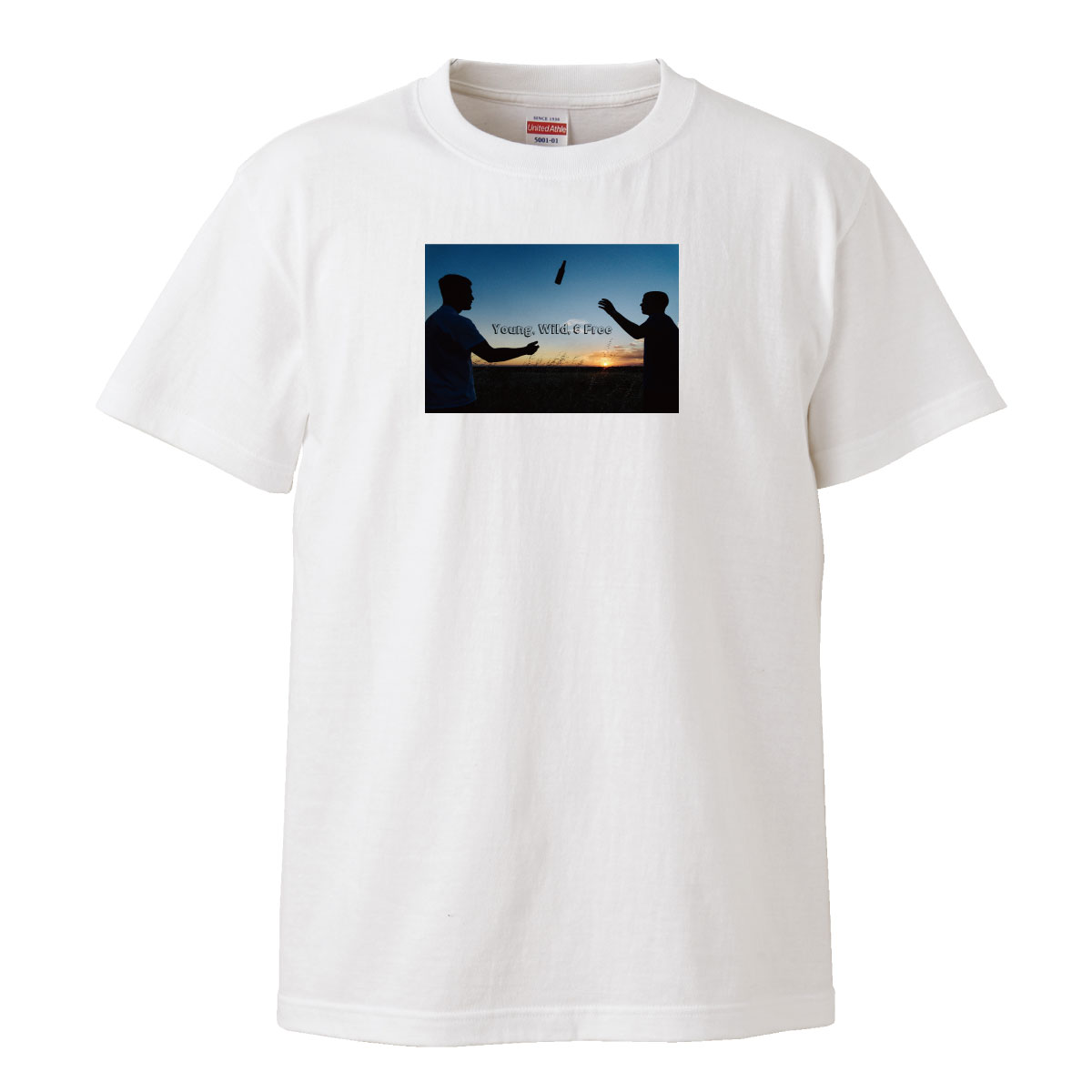 Young, Wild, & Free 若さ 若者 仲間 友達 friend 自由 絆 酒 乾杯 drink ロゴ 写真 フォト フォトT Tシャツ プリント デザイン 洋服 t-shirt 白 黒