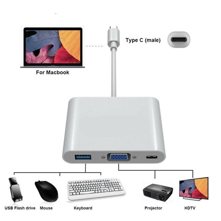 USB 3.1 Type C (USB-C) - C/VGA/USB3.0 3in1 変換アダプタは2015 MacBook、MacBook Pro、Google Chromebook Pixel iPadなど最新型のパソコンとVGA搭載の液晶テレビ、パソコンモニターやプロジェクターなどの周辺機器接続に使います。