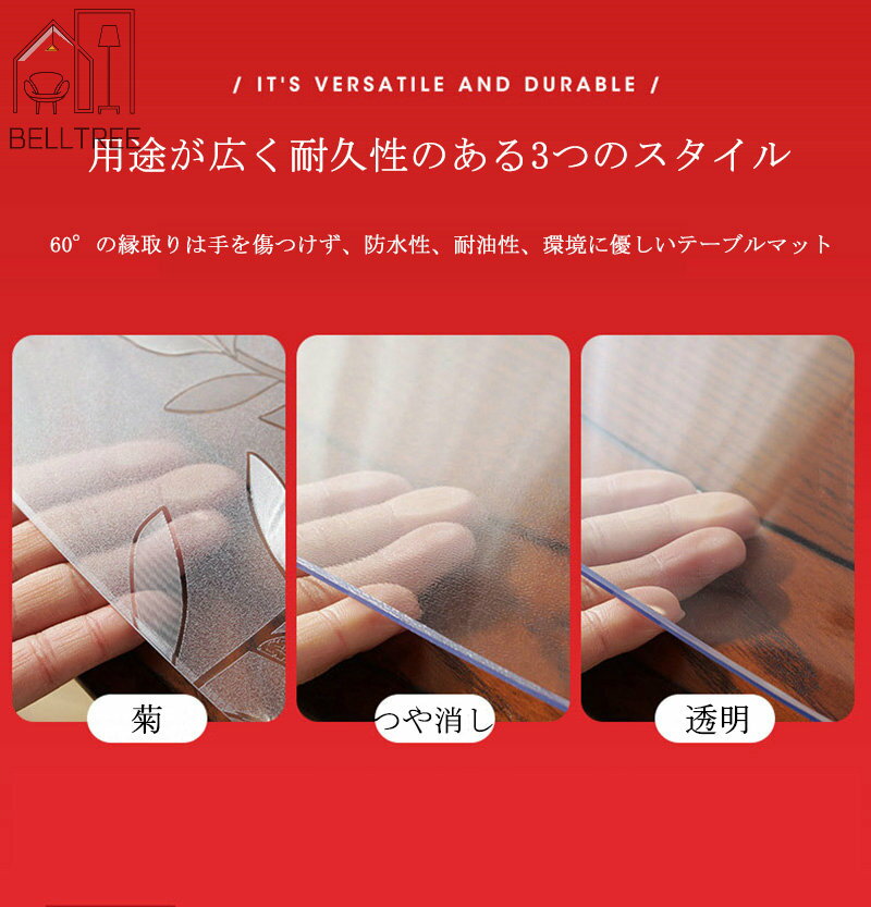 素材 PVC カラー 透明、つや消し、菊 仕様 厚み1.5mm厚 商品説明 しっかりとした1.5mm厚のマットのなのでテーブルの天板を汚れや傷などから守ります。