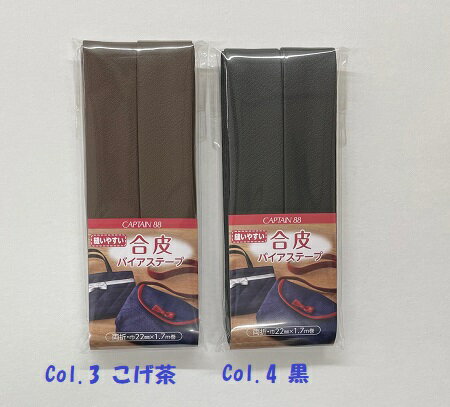 合皮の両折バイアステープ バックやポーチ、帽子などのふちどりやアクセントに! 糸・針とも普通地用の物は使用でき家庭用ミシンで、しかもテフロン押えなしで簡単に縫えます。