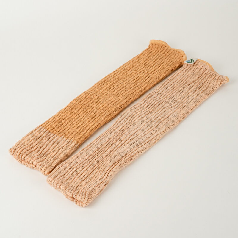 名称 草木染めレッグウォーマー・はらまきセット ビワ染め 商品概要 小豆島で育ったビワの葉で色づけています。