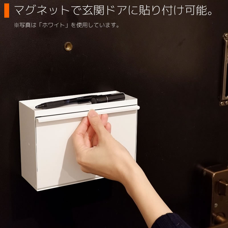 ●マグネットで玄関扉に取り付けたり、下駄箱の上に置いて使うこともでき、スペースを取りません。