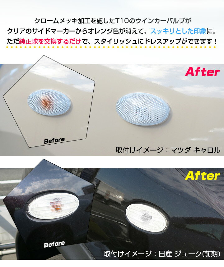 eKワゴン 対応 T10 ウインカー サイドマーカー ウインカーランプ ウインカーバルブ ステルスバルブ メッキバルブ メッキ ステルス アンバー クロームメッキ クロムメッキ ウインカー球 サイドウインカー ウィンカー 指示器 ウィンカー球 2個セット