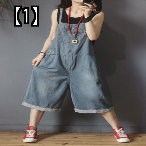 オーバーオール サロペット オールインワン レディース ツナギ つなぎ ストリート系 デニム ショーツ ルーズ ワイドレッグ キュート サスペンダー カジュアル