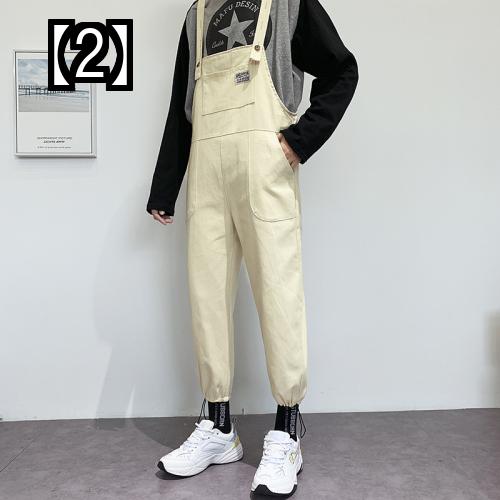 オーバーオール サロペット オールインワン ツナギ つなぎ ストリート系 デニム サスペンダーパンツ メンズ サスペンダー ルーズ ストレート ワイドレッグ 9分丈パンツ カジュアルパンツ